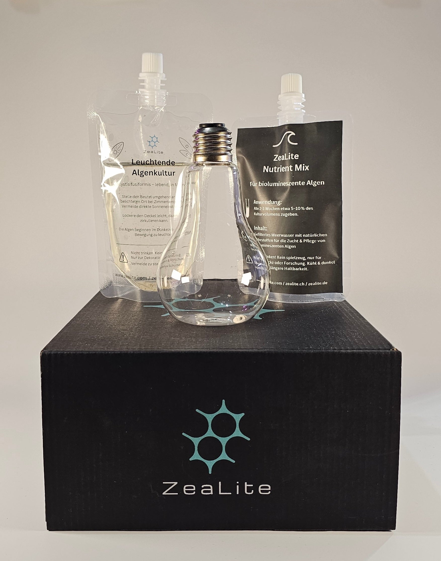After shipping, the algae need a few days to recover and resume their natural day-night rhythm (circadian rhythm). Glowing usually begins on the second day—but only during the night phase.