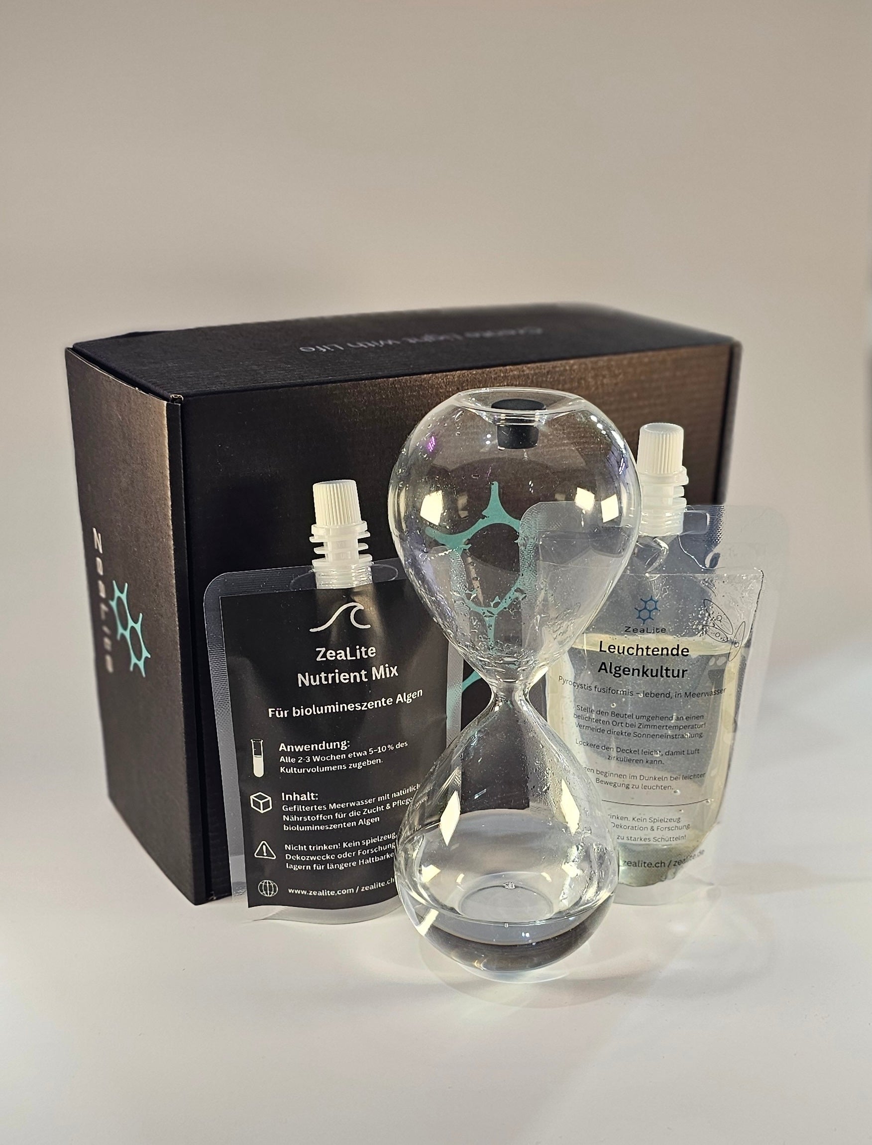 After shipping, the algae need a few days to recover and resume their natural day-night rhythm (circadian rhythm). Glowing usually begins on the second day—but only during the night phase.