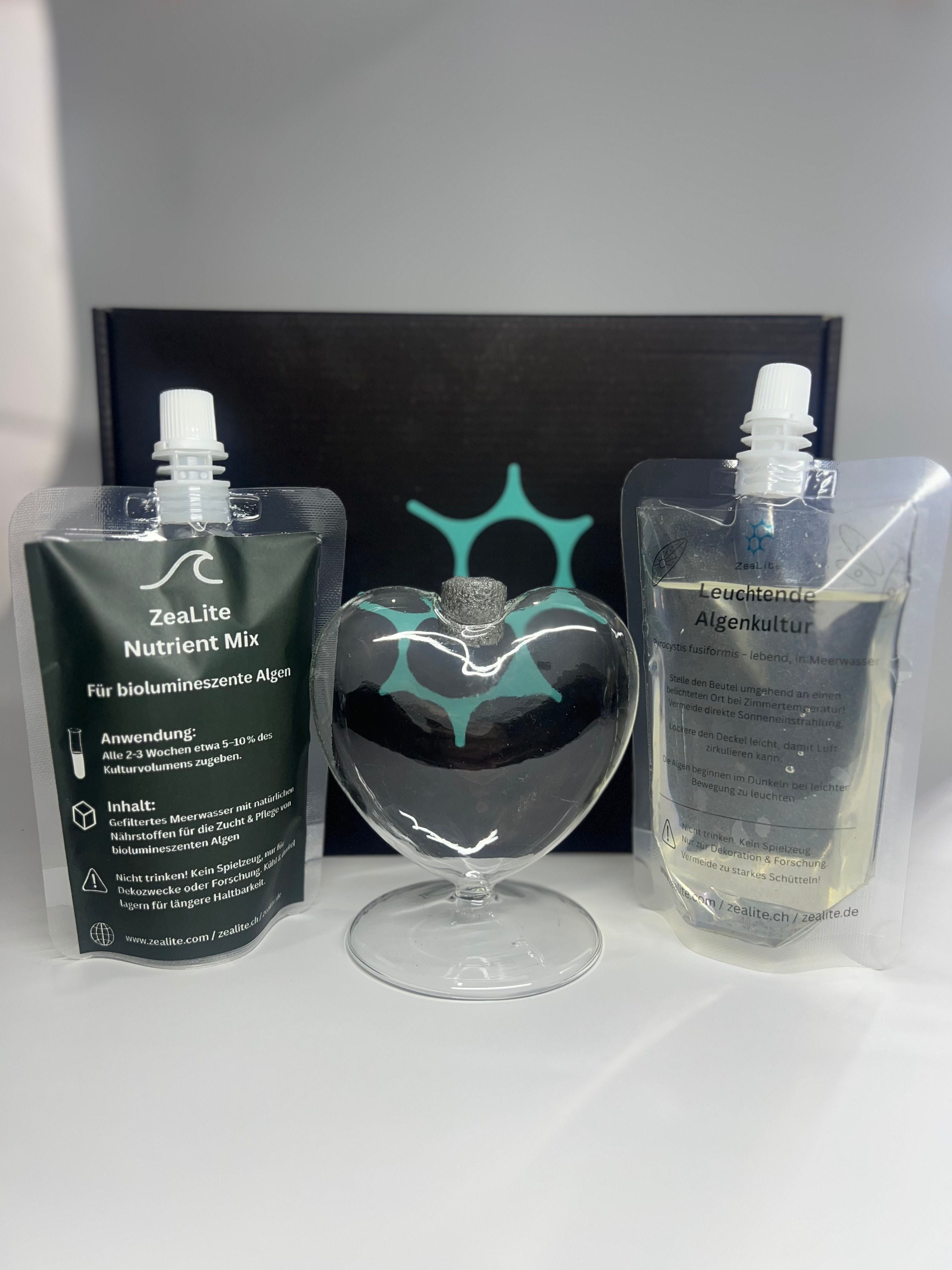 • Lebendiges Licht: Das Leuchten entsteht durch lebende Mikroalgen, die ganz ohne Strom, Batterien oder Technik Licht erzeugen. Ein natürlicher biochemischer Prozess, eingefangen in einer Herzform aus Glas.
