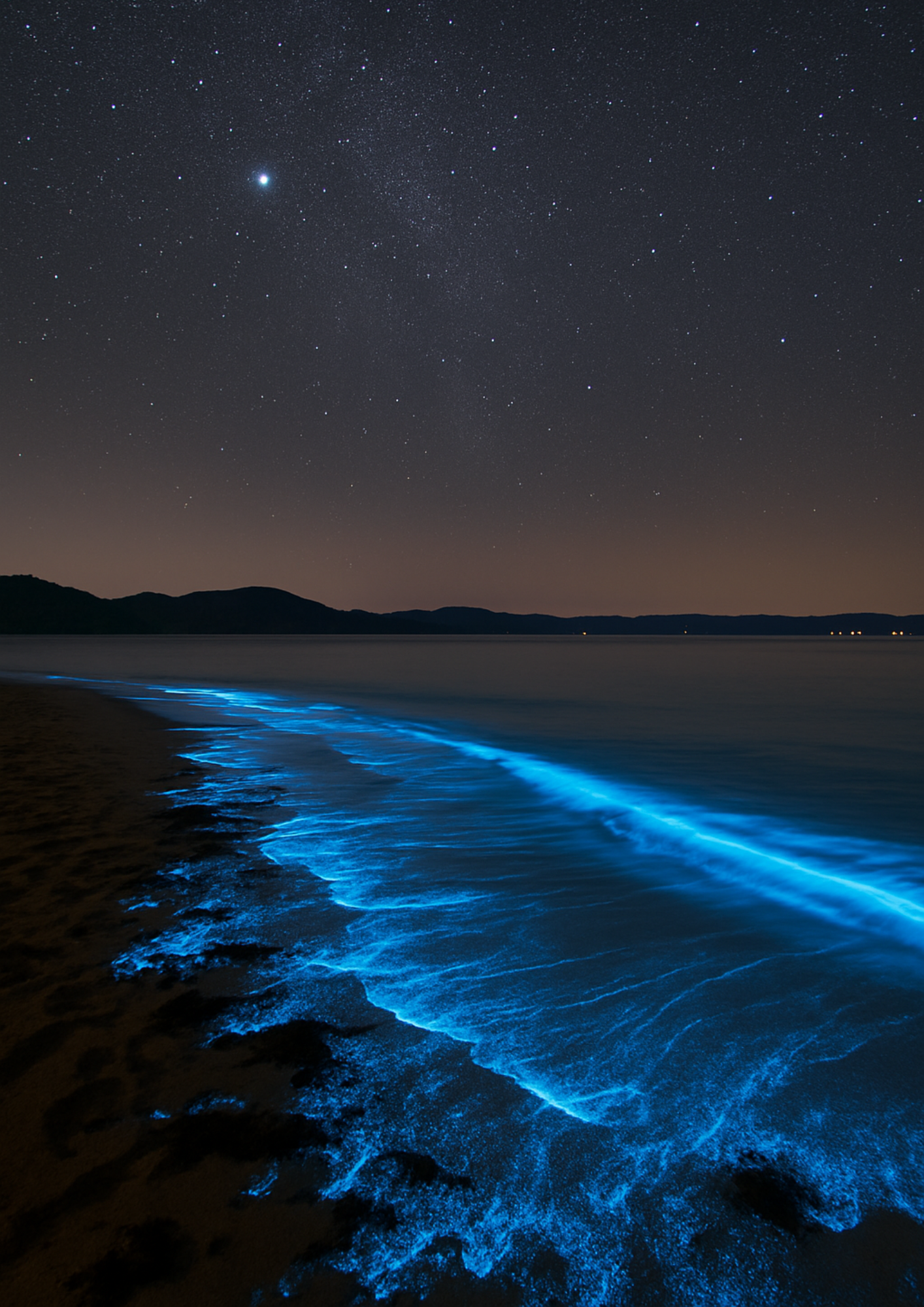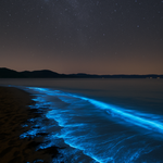 The glow is created by a natural process called bioluminescence. Certain molecules in the algae, particularly the enzyme luciferase and the substance luciferin, react to mechanical stimuli such as movement. This reaction releases energy in the form of blue light. It's a purely biological process that requires no electricity, batteries, or artificial additives.