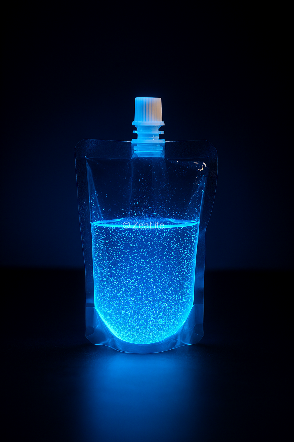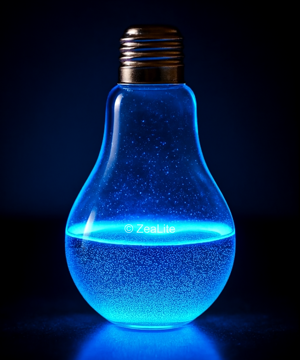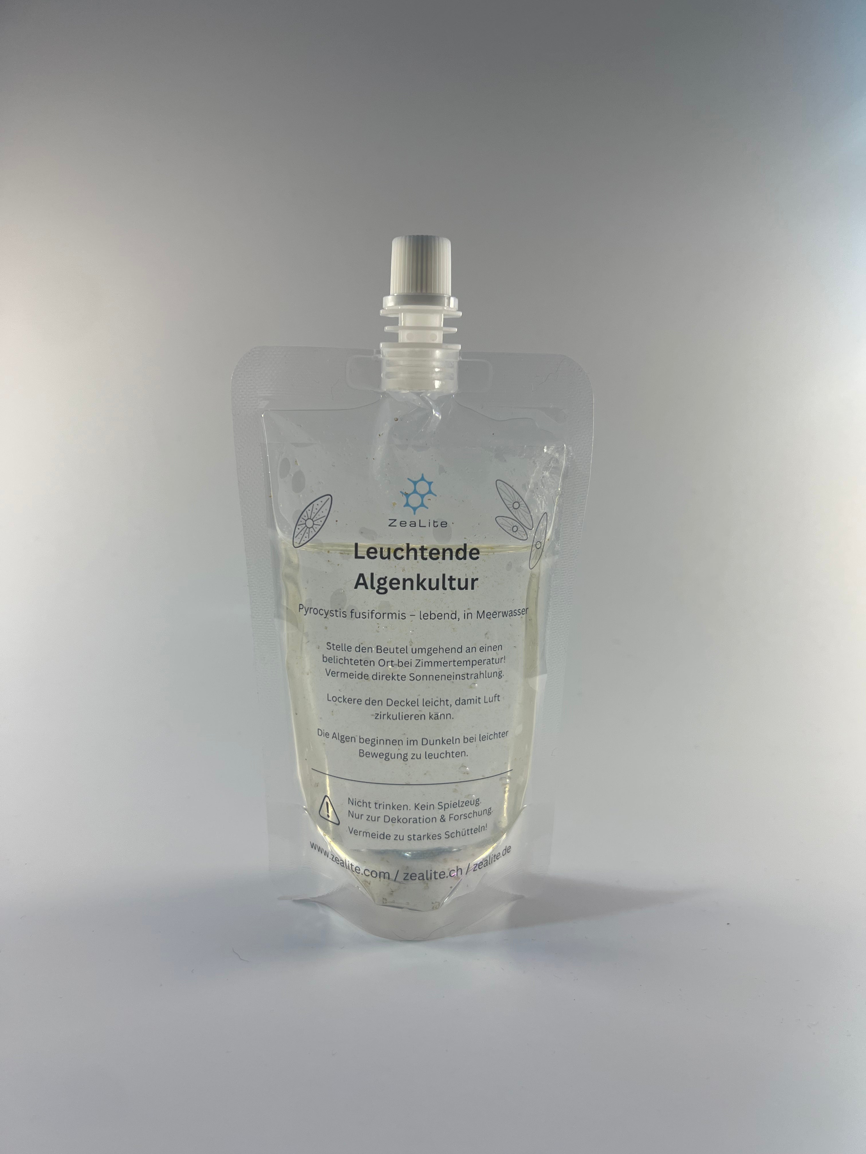 ZeaLite's 200ml contains a specially cultivated culture of bioluminescent algae that naturally emits a mesmerizing blue light when moved. This culture is ideal as a refill for the GlowBottle or Hourglass, creating atmospheric lighting effects.