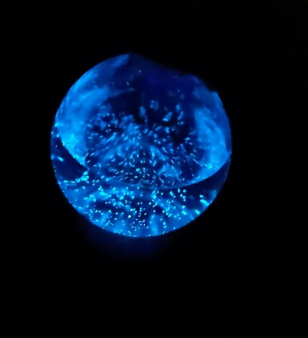 Die Algen leuchten immer dann, wenn du sie im Dunkeln bewegst. Schon eine leichte Drehung oder ein kurzes Schütteln genügt, und sie beginnen in ihrem typischen Blauton zu leuchten. Am Tag ruhen die Algen, doch sobald es dunkel wird, beginnt ihr nächtlicher Zauber.